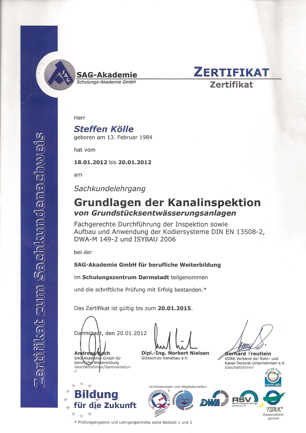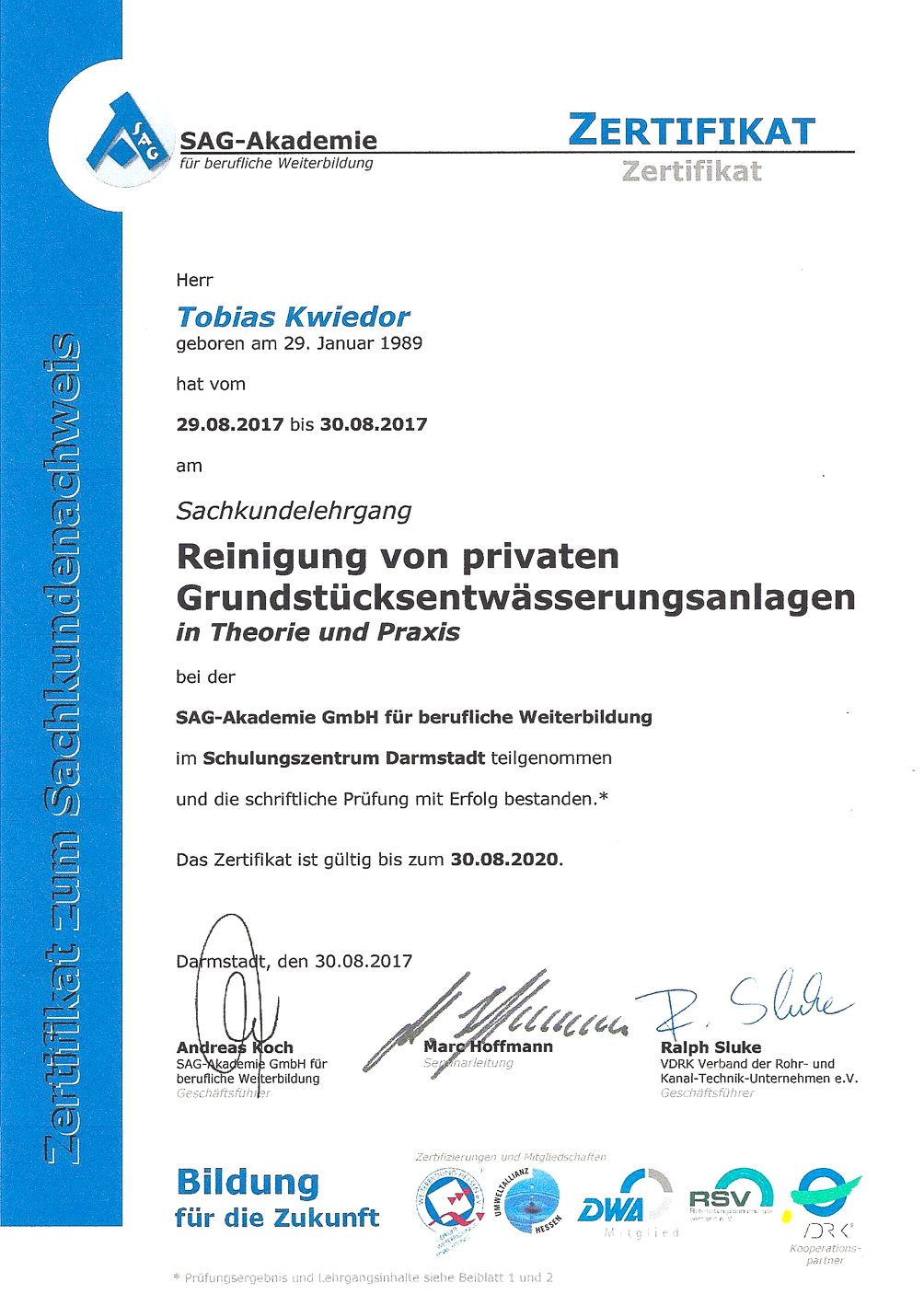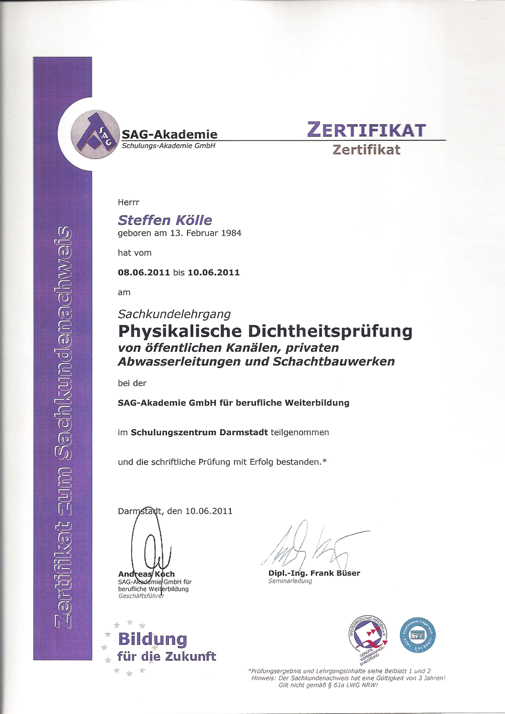 Unser Unternehmen verfügt über zahlreiche Zertifikate, unter anderem von: